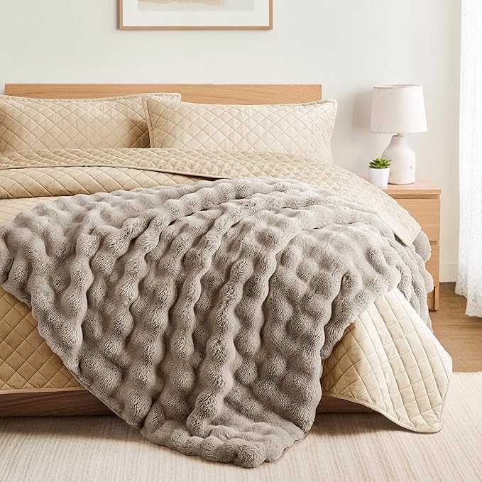 The Rabbit Fur Thick Blanket offers exceptional softness and warmth, making it an ideal choice for cozy evenings on the couch or in bed during colder months. Crafted from 650GSM premium microfiber polyester, this bubble faux rabbit fur blanket is fuzzy and fluffy, providing a cloud-like experience for snuggling.