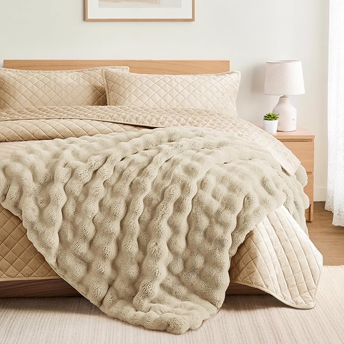 L’AGRATY Faux Fur and Velvet Blanket Set